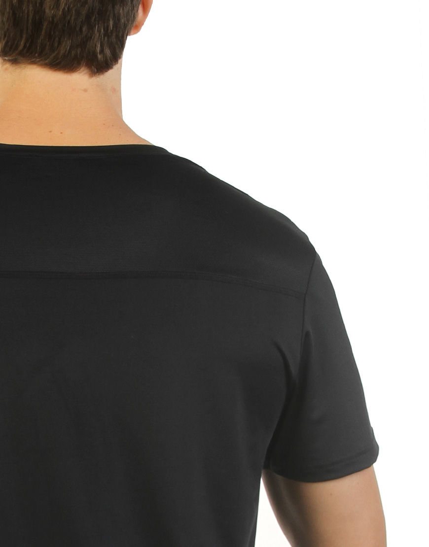 Technical DetailsFitted Silhouette with side seam construction | Double needle hem at bottom and sleeves for stretchability and durability | Back neck size print for comfort | Light breathable Fabric at back yoke for moisture wicking